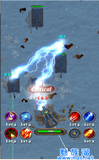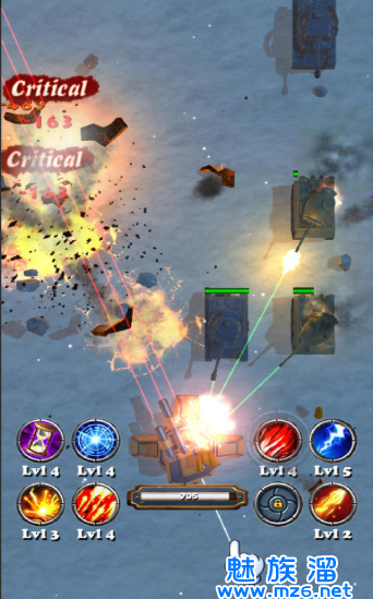 3、在游戏中玩家不断地攻击敌人,降低敌人的生命可以增加自己的关卡分数也可以获得大量的金币不断地累计自身的经验提升炮塔等级。